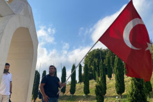 Anıta ziyarete gelen 13 yaşındaki Arda Demir, “Türkiye Cumhuriyeti yıkılamaz, burada şehitlerimiz andık ve dua ettik.” dedi.