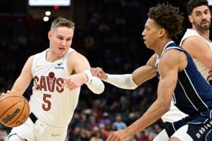 Cavaliers’ta Sam Merrill 27 sayıyla maçın en skoreri olurken Evan Mobley 22 sayı, 11 ribaunt ve Darius Garland 17 sayı, 10 asistle double-doublelık performans sergiledi.