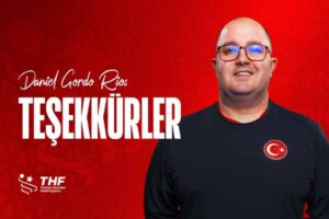 4 Ocak 2024’ten bu yana Erkek Ulusal Hentbol Grubumuzun başantrenörlüğünü yürüten Daniel Gordo Rios ile yollarımızı ayırmış bulunmaktayız. Ulusal grubumuza kattığı bedelli katkılar, emeği ve özverili çalışmaları için kendisine teşekkür eder, gelecek mesleğinde muvaffakiyetler dileriz.