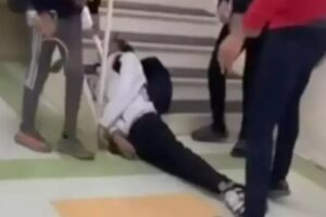 Görüntülerde, taarruz sonrası öğrencinin nöbet geçirdiği ve akabinde yardımla ayağa kalktığı görülüyor.