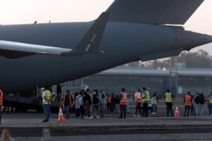 Sınır dışı edilen bir küme göçmen, ABD hava kuvvetlerine ilişkin askeri uçak ile Orta Amerika ülkesi Guatemala’daki La Aurora Memleketler arası Havaalanı’na geldi.