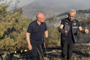 Ulaştırma ve Altyapı Bakanı Abdulkadir Uraloğlu, Yangın Harekat Merkezi’nde, bölgede devam eden çalışmalar ve son durumla ilgili Vali Erol Ayyıldız ve Orman Bölge Müdürü Erdal Şahan’dan son bilgileri aldıktan sonra helikopterle yangın bölgesinde havadan incelemelerde bulundu.