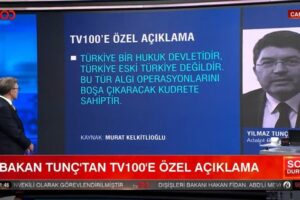 Adalet Bakanı Yılmaz Tunç, tv100’e özel yaptığı açıklamada, “TÜSİAD’ın açıklaması hukuk sistemimize müdahale manasına gelir. Herkesin fikirlerini söyleme özgürlüğü vardır lakin TÜSİAD bilhassa seçtikleri soruşturmaları husus ederek hukuk sistemimizi zedelemeye çalışmaktadır” dedi.