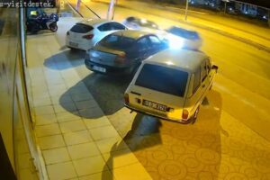 Bu sırada iki araç çarpışıp sürüklenerek park halindeki araçlara çarptı.