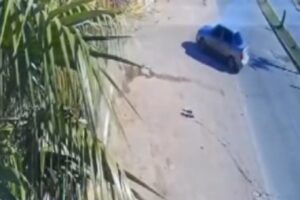 2 saat sonra tekrar tıpkı virajda denetimden çıkan bir araba de refüjdeki ağaçlara çarptıktan sonra yolda kendi etrafında dönerek durdu.