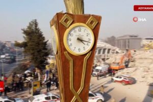 Asrın felaketinde büyük yıkıma uğrayan Adıyaman’da kentin simgesi olan saat kulesi 2 yıldır 04.17’yi gösteriyor.