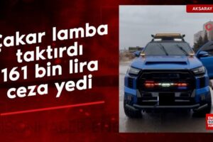 Aksaray’da arazi aracına taktırdığı çakar lambalarla trafikte polise yakalanan şoföre 161 bin 651 lira ceza kesilirken, aracı 30 gün trafikten men edildi.