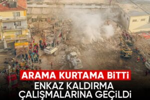 Değerli arkadaşlar, az evvel yapılan toplantıda dışarıdan rastgele bir ihbarın gelmediğini kayıt altına aldık. Başlangıçtan itibaren yapılan tüm çalışmalar sonucunda, içeride 5 kişinin enkaz altında olduğu belirlenmişti ve bunun dışında öbür bir ihbar alınmadı. Hasebiyle, şu andan itibaren arama kurtarma çalışmalarını sonlandırıyor ve denetimli enkaz kaldırma basamağına geçiyoruz.