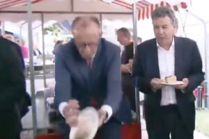 Almanya Başbakanı Merz’in tartışma yaratan görüntüsü: Pastayı elinden düşürdü