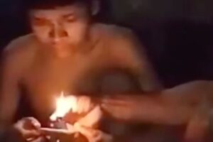 Brezilya’nın yüz ölçümü en büyük eyaleti Amazon’da insanlıktan uzak yaşayan bir kabile üyesine çakmağın nasıl kullanıldığı gösterildi.