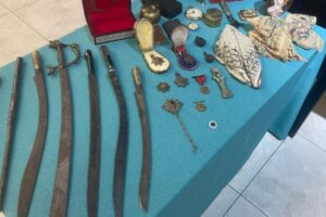 Ayrıca ele geçirilenler ortasında Osmanlı sarayındaki mutfakta kullanılan 19. ve 20. yüzyıla ilişkin Avrupa ve Fransız kültüründen çatal, bıçak ve kaşık grubu, 1877’de sınır sanatıyla yapılan besmele yazılı ahşap levha, orta kısmında Yedi Uyuyanlar’ın isimlerinin yazılı olduğu Kelime-i Şehadet ve Ayet-el Kürsi ile çevrelenmiş sınır levha, 1911 tarihli üzerinde Allah’ın isimleri ve Dört Halife’nin isimlerinin yazılı olduğu orta kısmında Süleymaniye Mescidi betimlenen bez levha da bulunuyor.