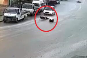 Sürücünün talih yapıtı yara almadan atlattığı kaza anı güvenlik kamerasına yansıdı.