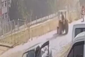 Olayla ilgili inceleme başlatılırken kaza anı güvenlik kamerasına yansıdı.