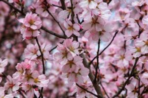 Ağaçların kısımlarını kaplayan pembe ve beyaz çiçekler, bulundukları bahçeler ile yerlerde hoş görünümler oluşturdu.