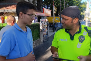 Antalya’da genç sürücü, ehliyet sevincini polisle paylaştı