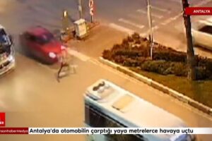 Antalya’da otomobilin çarptığı yaya metrelerce havaya uçtu