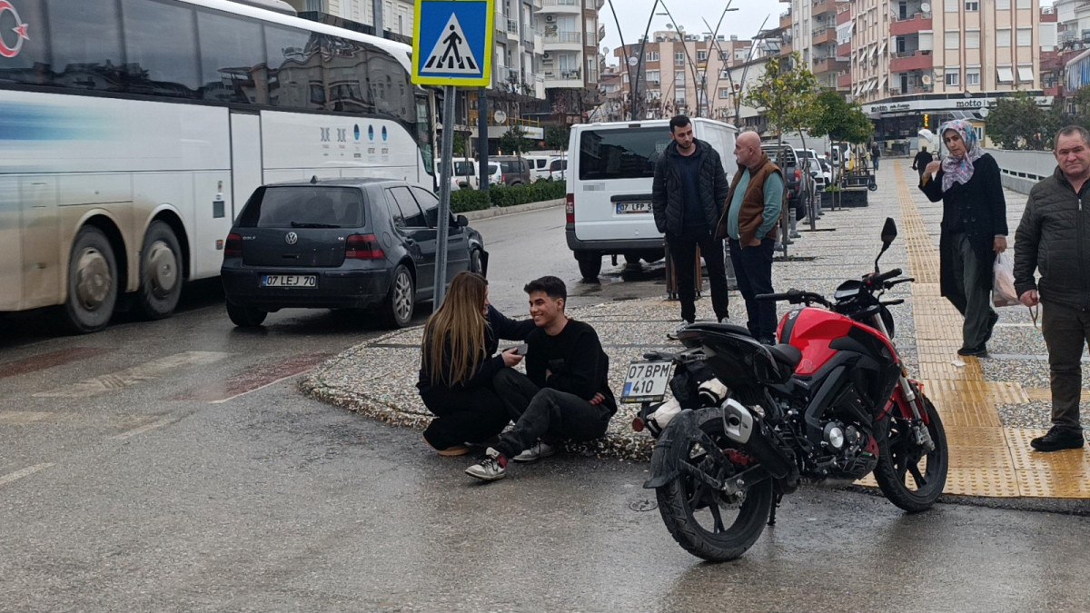 Antalya’da yaralanan motosiklet sürücüsünü kız arkadaşı teselli etti