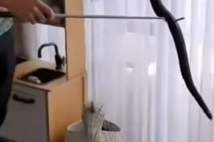 Bir anne kızının oyuncak kutusundan zehirli bir yılan yakaladı.