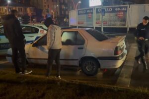 Çatmaca Kavşağı’nda bulunan polislerin de dur ihtarına uymayan araba şoförü kaçmaya devam etmek istedi.