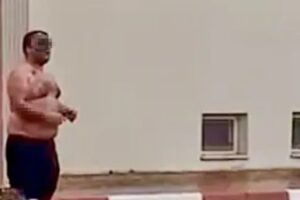 Sabah saatlerinde elinde kesici bir aletle binanın önüne gelen yarı çıplak haldeki şahıs, elindeki bıçağı etrafa sallayarak bağırmaya başladı.