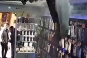 Telefon aksesuarı satan dükkanın sahibi Emre Sesver’in (52) arkadaşı üst kata çıktığı sırada, tavan çöktü.
