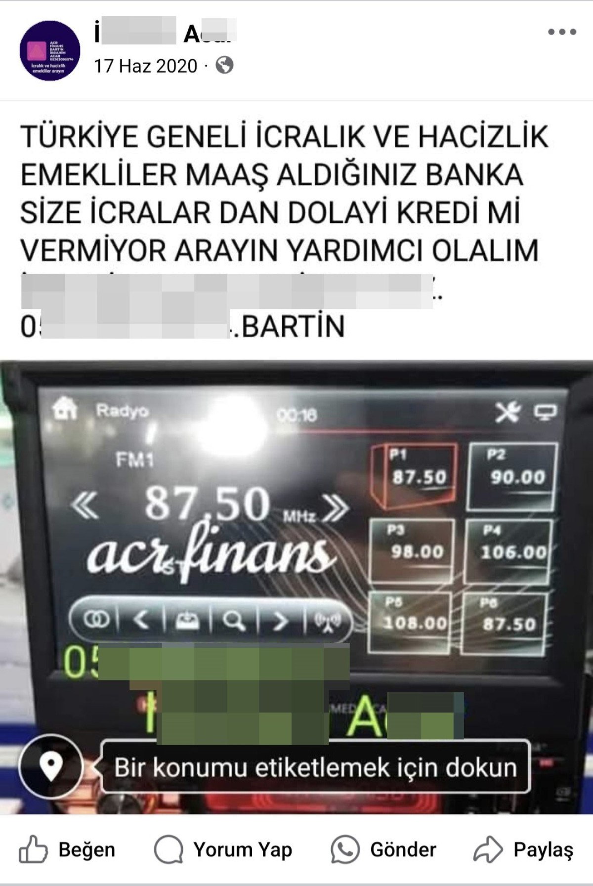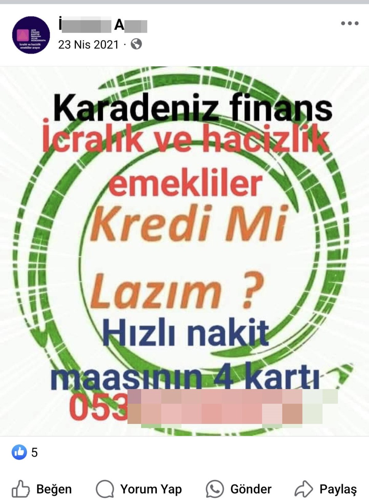 Dolandırıcılar konusunda ikazda bulunarak itimat telkin eden paylaşımlardan birinde ise, “İcralik emekliye maaştan muafakatla, altın, telefon ve kömür. Nakit gereksiniminizi tıpkı gün çözüyoruz. Ön ödeme isteyen dolandırıcılara inanmayın” sözleri kullanıldı.