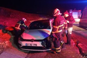 Hafif ticari araç şoförü S.P.’nin sıyrıklarla kurtulduğu kazada araçta bulunan Z.N.P. (14), K.P. (44) ve V.P. (11) ile araba şoförü A.E.K. yaralandı.