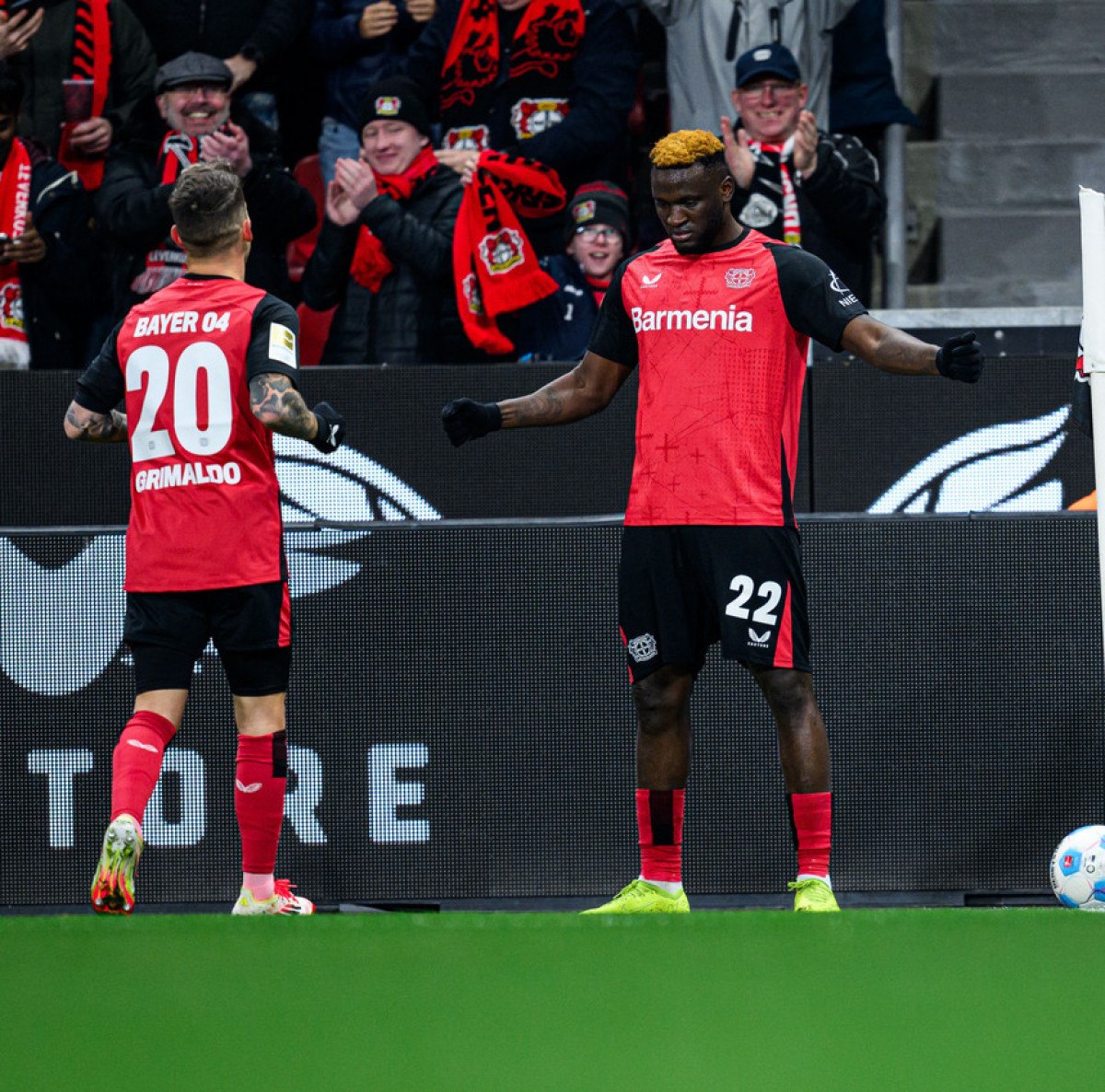 Bayer Leverkusen’in gollerini, Victor Boniface, Jeremie Frimpong ve Patrik Schick kaydetti.