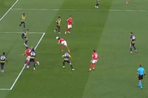 Benfica’nın korner vuruşunda Leandro Barreiro çizgide Nelson Semedo’nun istikrarını bozmasına Fenerbahçe kulübesi itiraz etti.