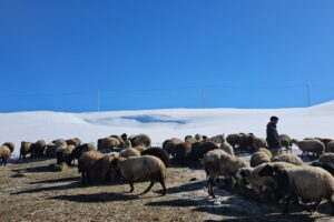 Bazen kar fırtına nedeniyle günlerce hayvanlarımız içeride kalıyor. Hayvanlarımız havanın hoş olduğu günlerde ise yazın topladığımız otlarla kar üstünde besliyoruz” dedi.