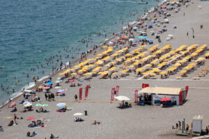 Sahildeki tüm şemsiyelerin açık olması, sıcaklığın tesirini gözler önüne serdi.