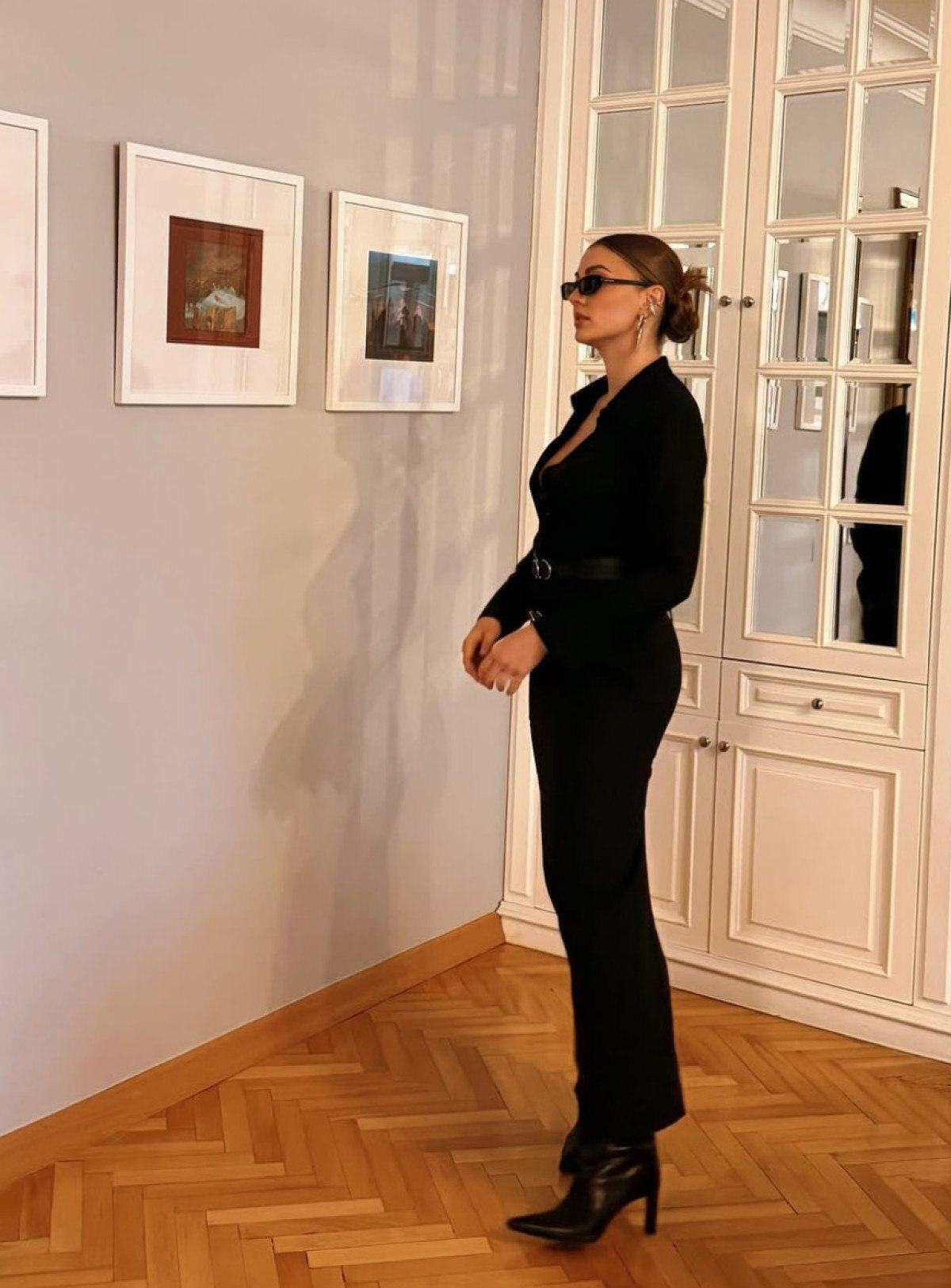 Siyahlar içerisinde bir kombin yapan Burcu Özberk verdiği kareleri Instagram hesabından paylaştı.