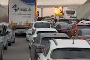 Bursa İzmir otobanında kaza sonrası yol trafiğe kapandı