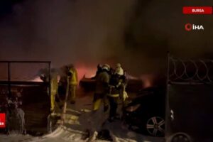 Bursa’da oto galeriye ilişkin park alanında çıkan yangında 10 araç kullanılamaz hale gelirken, 3 araçta ise maddi hasar meydana geldi. Yangın, itfaiye gruplarının müdahalesiyle söndürüldü.