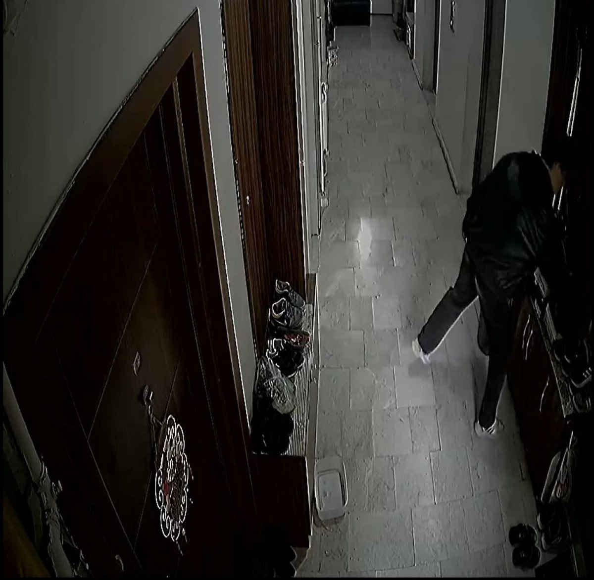 Aldıkları ayakkabıyı bırakan şüpheliler kaçarken, o anlar, apartmanın güvelik kamerasına yansıdı. İmgelerde, apartmanda dolaşan 2 şüphelinin merdiveni kullanarak üst kata çıktığı, bir çift ayakkabıyı aldıktan sonra, tıpkı daire önünden ikinci ayakkabıyı almaya çalıştığı sırada, asansörden inen apartman sakinini görüp, koşarak merdivenlerden kaçtığı görüldü.
