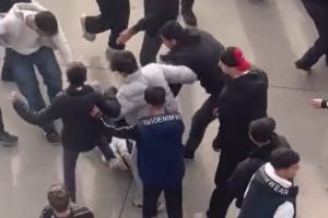 Tartışma kısa müddette hengameye dönerken bir küme erkek öğrenci, yere yatırdıkları bir kişiyi tekme ve yumruklarla darbetti.