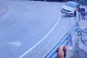 Uludağ’dan Çekirge’ye seyir halinde olan bir araba, şoförünün viraja süratli girmesi nedeniyle denetimden çıkarak bariyerlere çarptı.