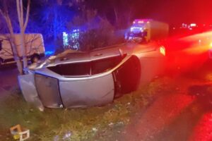 Yol kenarında ağaçlara çarparak takla atan arabada bulunan şoför İlyas G. ile yanında yolcu olarak bulunan Hatice Ergül (64) ve başka arabanın şoförü Muhammet Can P. yaralandı.