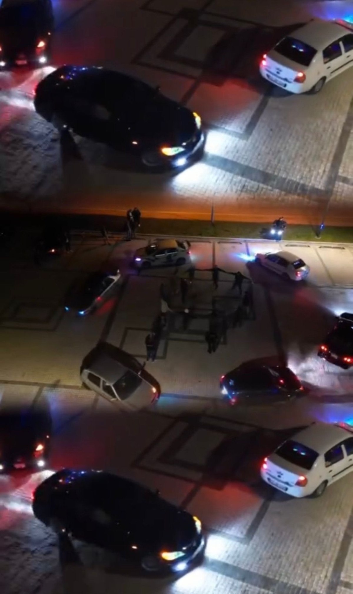 Arka geriye dizilen arabalar şoförleriyle ilerlerken, ortada duran şahıslar ise müzik eşliğinde ‘kutu kutu pense’ oyunu oynadı.