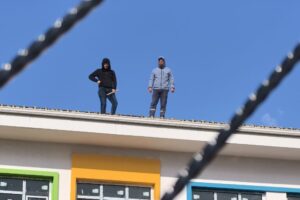 İşçiler birebir anda İnegöl ve Yıldırım ilçelerinde inşaat halinde bulunan anaokulu binalarının çatılarına çıktı.