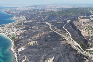 Çanakkale’de yangından sonra oluşan acı tablo havadan görüntülendi