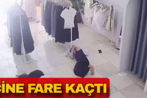 Bir mağazada dinlenen genç bayanın kıyafetinin içine apansız bir fare girdi.