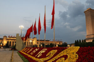 Çin Halk Cumhuriyeti’nin kurucu lideri Mao Zıdong’un portresinin yer aldığı, “Yasak Şehir” olarak bilinen eski İmparatorluk Sarayı’nın güney duvarı aydınlatıldı. Meydanın ortasına ise Ulusal Gün’e özel olarak hazırlanan dev çiçek buketi yerleştirildi.