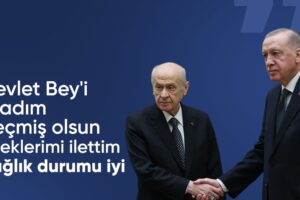 Sayın Bahçeli’ye hem şahsım hem de partim ismine geçmiş olsun dileklerimi iletiyor, kendisine Şanlı Allah’tan acil şifalar diliyorum. Sıhhat durumunun düzgün olduğunu şahsen kendisinden öğrendim. Kendisinin kısa müddette nekahat sürecini tamamlayarak, Türkiye’ye olan hizmet çabasına eskisinden de büyük bir kararlılıkla devam edeceğine yürekten inanıyorum.