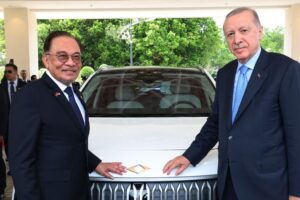 Cumhurbaşkanı Erdoğan Malezya Başbakanı Enver İbrahim’e Togg aracı ikram etti.
