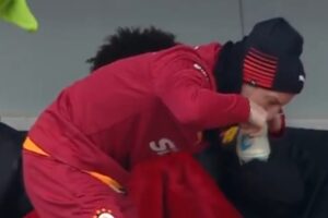 Dakikalar 27’yi gösterdiğinde kamera tarafından görüntülenen Mertens’in soğuk hava karşısında aldığı tedbir dikkat çekti.