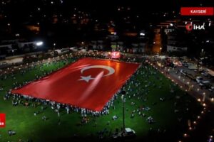 Kayseri’de 15 Temmuz Demokrasi ve Ulusal Birlik Günü aktiflikleri çerçevesinde Erciyes Anadolu Holding tarafından yaptırılan dünyanın en büyük Türk bayrağı açıldı.
