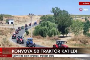 Edirne’nin Keşan ilçesinde traktörünü gelin arabası üzere süsleyen damat, 50 traktörün katıldığı konvoyla gelin almaya gitti. Hayatlarını birleştiren Ataer Yıldırır ile Ezgi Bilici, bu tertip ile genç çiftçileri çiftçiliğe adapte edebilecek bir ileti vermek istediklerini söyledi.