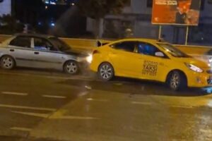 Edirne merkez Atatürk Bulvarı’nda kırmızı ışıkta bekleyen araçlara artlarından süratle gelen bir araba çarptı.