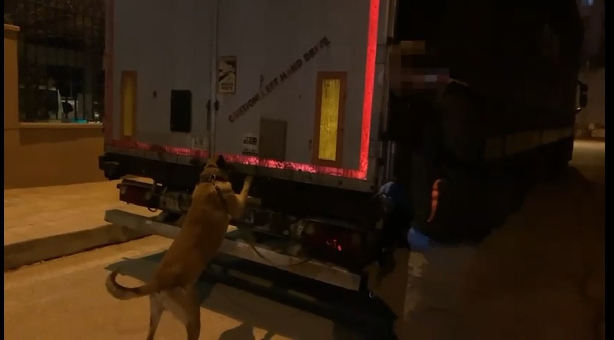 Hassas burunlu narkotik dedektör köpeğin de yardımıyla tırda yapılan aramada piyasa pahası yaklaşık 20 milyon Türk Lirası olan 110 kilogram skunk ele geçirildi.